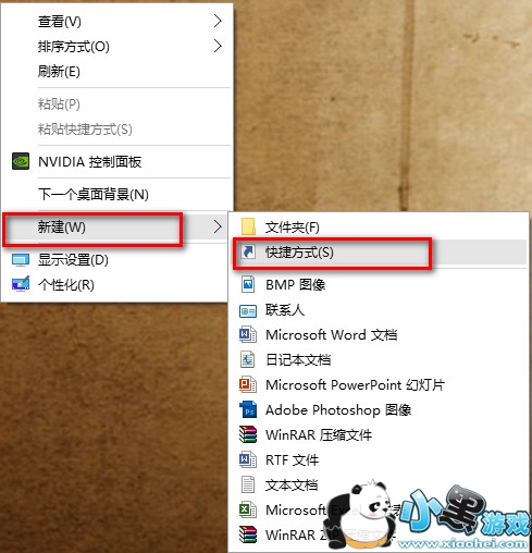 1、在桌面点右键,选择“新建→快捷方式”