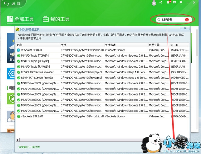 c、有安装360安全卫士的小伙伴可以搜索LSP修复工具进行一键修复
