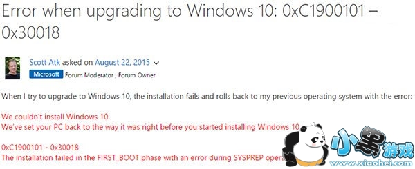 Win7/Win8.1用户升级Win10不顺利并不是一件新鲜事,从7月29日Windows10正式版发布至今,已经有各种问题显现出来。其中有一个项就是错误代码为0xC1900101 - 0x30018的升级失败问题。微软目前已经证实该消息,并在微软社区发布消息称该问题正在修复中。