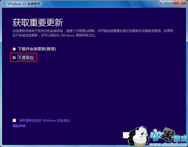 8、在升级开启后,不要选择“下载并安装更新”,而应该选择“不是现在”(如上图),避免任何自动安装驱动可能导致的兼容性问题。