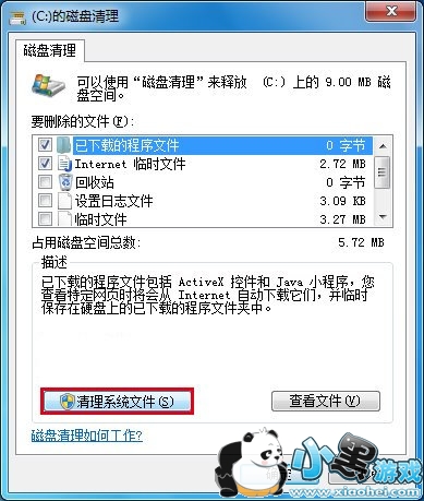 5、运行磁盘清理程序,并选择清理系统文件(如下图);