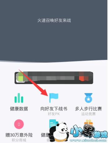 进入健康界面,可以看到具体的相关功能,点击【好友PK】