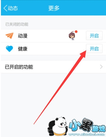 此时可以看到【健康】选项,点击后方的【开启】