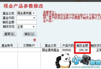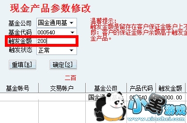 选择基金代码后,可以显示出触发金额,这个200就是为什么你总是只有200的可用资金。