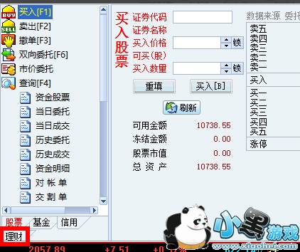 打开全能行后,点击交易,登录自己的佣金宝账户。