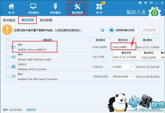 如果你的电脑是在升级之后出现的该情况,请在驱动人生的驱动管理板块,将显卡驱动进行还原操作。