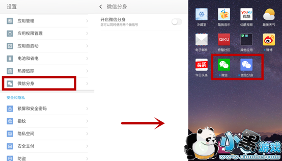 9、360奇酷手机的最强黑科技“双微信”功能。在【设置】中找到【微信分身】,点击开启后,原始的微信旁边会出现一个蓝色的名为“ 微信分身”的应用。这两个微信可同时登陆不同号码,且双方不共享数据,独立运行。