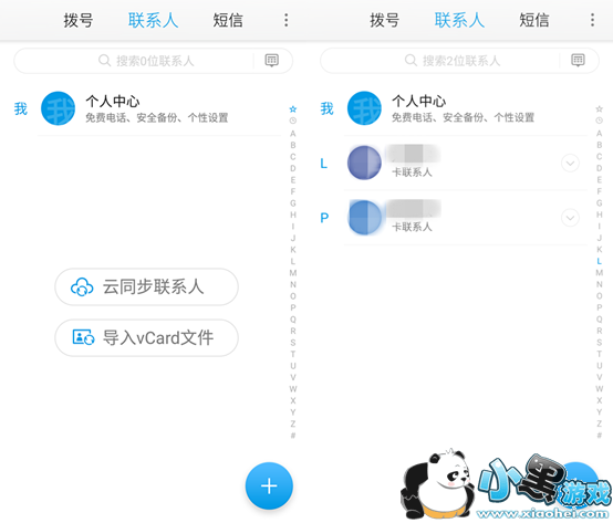 5、点击进入设置通讯录。在这里可以选择【云同步联系人】同步云端通讯录中的联系人名单,或者【导入vCard文件】导入名单。如果SIM卡中存储过联系人,系统会自动显示。