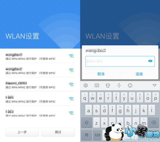 2、设置网络,如有可用WiFi,选择并输入密码,链接。如没有,点击【跳过】。