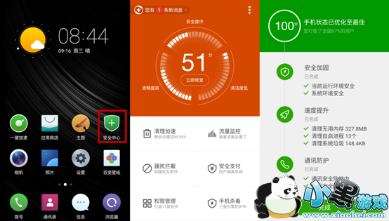 6、点击首界面的【安全中心】,进入后,可在该界面进行清理加速、流量监控、骚扰拦截、安全支付、权限管理、手机杀毒等功能。点击【立即修复】,可立刻为手机进行清理优化。