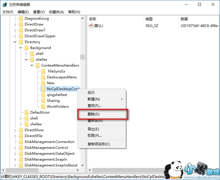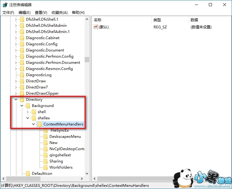 双击,找到HKEY_CLASSES_ROOT/Directory/Background/shellex/ContextMenuHandlers