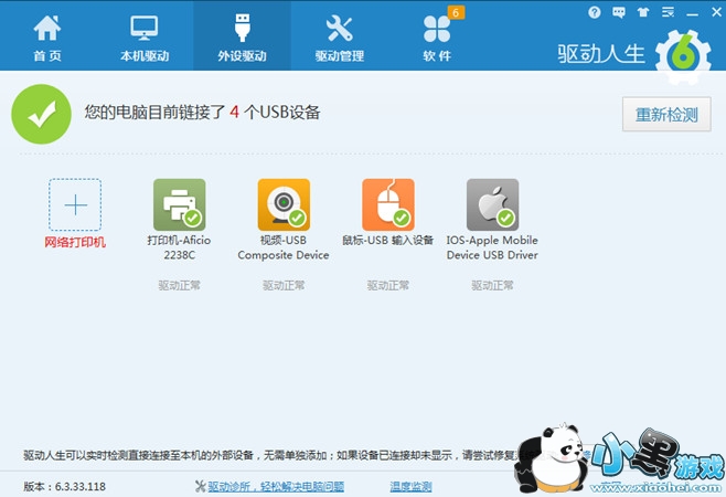 对于任何的USB外设设备驱动,驱动人生都可即插即装,装驱动不再是难事。除了外设驱动的这一功能,电脑驱动其它问题都可以用驱动人生一一解决,驱动人生的功能就是这么强大!