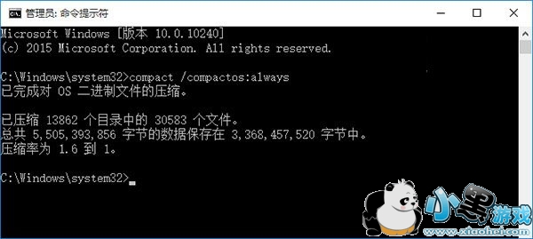 熟悉DISM映像部署和管理工具的朋友可以使用该工具以Compact压缩方式安装Windows10,除此之外,用户也可以在系统安装完成后随时开启Compact压缩,已经有一些第三方工具提供了这一功能,如果不借助第三方工具的话也只需要一条命令即可,方法如下: