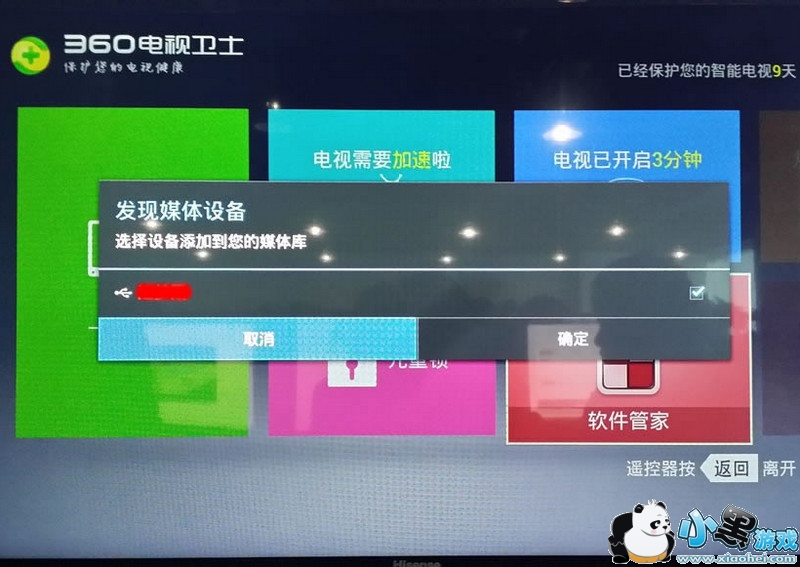 4、升级到最新版本后,将U盘插到电视上,会出现电视自带的提示,直接选择取消。