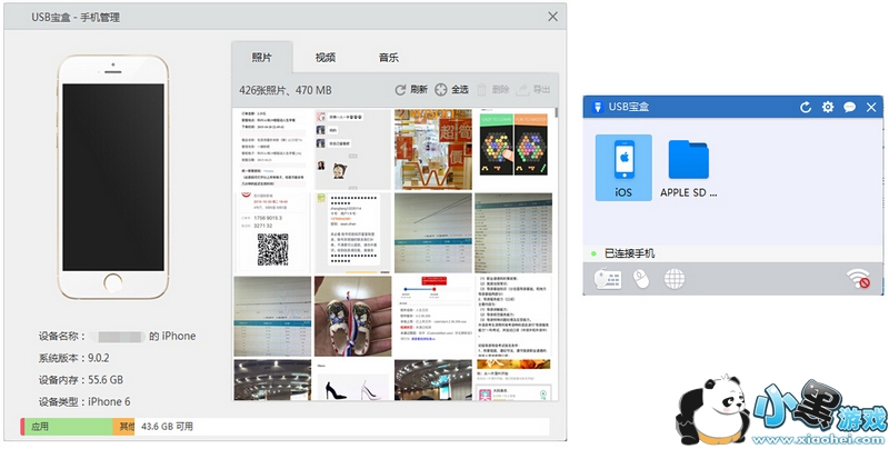 最新版的USB宝盒也及时收录了市场上存在的手机驱动程序并且在不断的更新。只要将手机连接到电脑,USB宝盒会自动识别手机,并在10秒之内安装好手机驱动。左键点击手机驱动,能够直接打开手机管理界面,在此界面你可以轻松管理手机的照片、视频以及音乐。