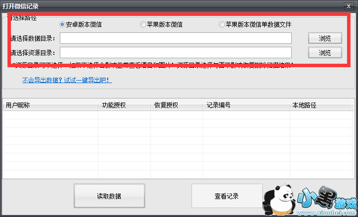 3、导出微信记录后,软件会自动将导出的文件夹填写到“打开微信记录”窗口上,并且读取数据。