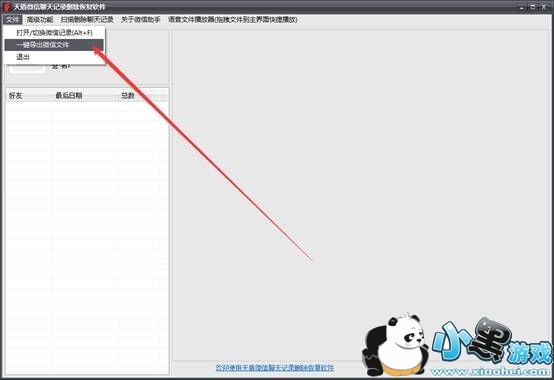 2、打开软件之后,点击文件——一键导出微信文件。然后在弹出的窗口上,选择安卓设备的微信记录,并导出。