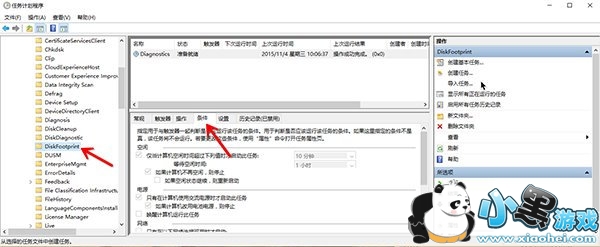 2.在计划任务程序中左侧导航栏内依次进入>Microsoft> Windows> Diskfootprint,在右侧就会看到名为Diagnostics的任务了。