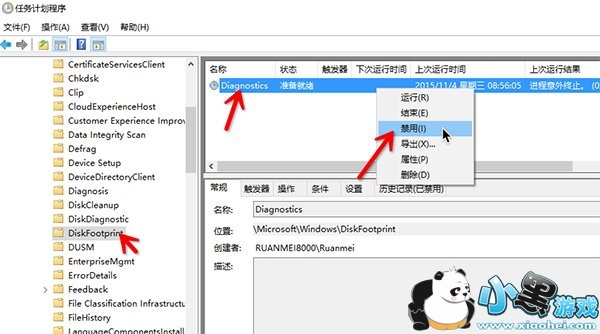 4.我们在这个名为Diagnostics的任务上点击右键,直接禁用掉这个任务就可以了。是不是很简单啊~?