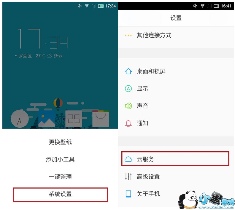 STEP:1菜单键-进入系统设置-云服务