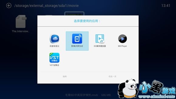 打开视频文件后显示如下,提供了多种播放器选择,和电脑一样,好亲切的感觉