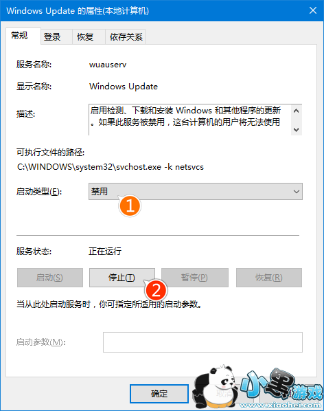 3、将启动类型改为“禁用”,点击“服务状态”下面的“停止”按钮,如下图——