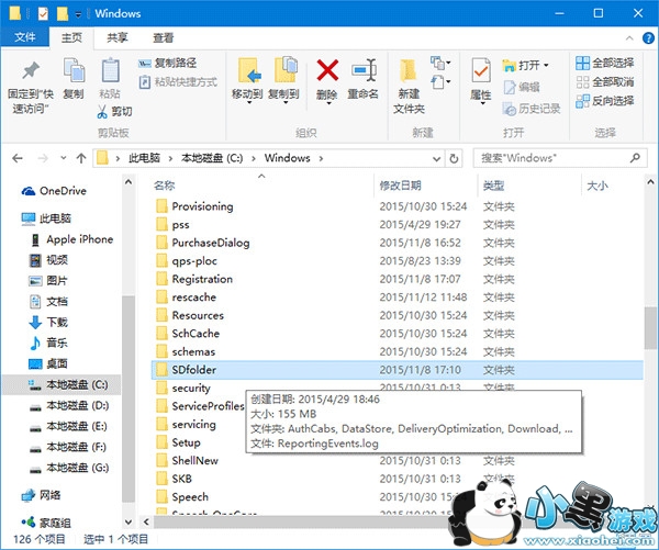 4、重命名C:/Windows/SoftwareDistribution文件夹为SDfolder,如下图——