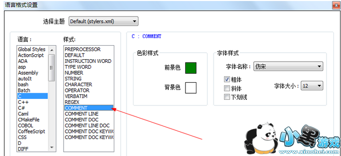7、设置注释字体格式。接着上一步骤,我们在“样式”的那一栏中选择“COMMENT”表明我们要对注释字体进行设置,具体操作情况如下图所示