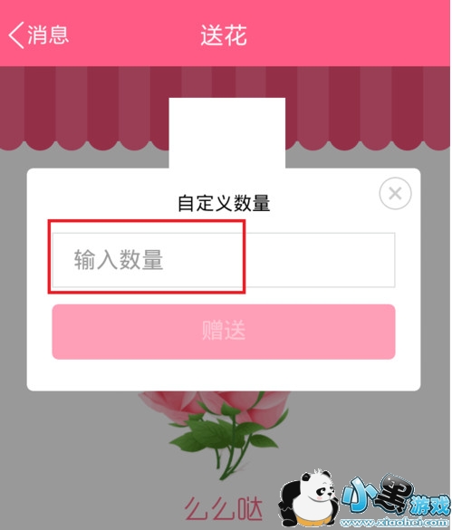 接下来,我们便需要输入送花的数量啦,经过笔者测试,一次送花数量最多为99999个,不可以超过这个数量,我想这也只能是土豪才能送得起的数量吧。