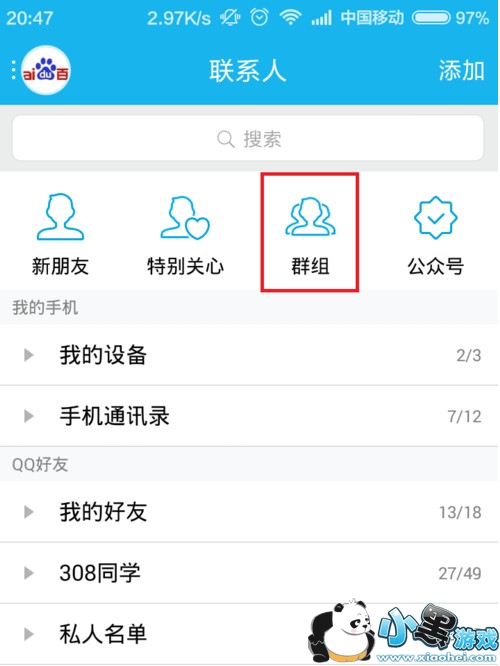 首先,请大家将自己手机上安装的手机QQ更新到最新版本,因为只有最新版本的手机QQ才可以享受到送花功能应用,然后我们点击进入手机QQ主面板,点击选择“群组”选项。