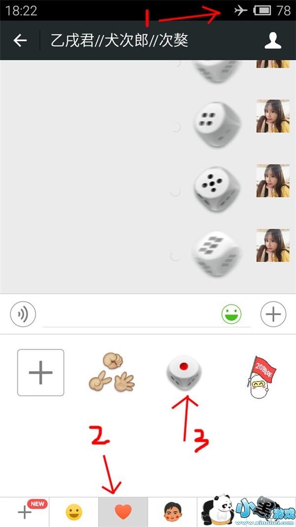 而“摇骰子”必胜法的秘诀就是,先把手机开启飞行模式,之后进群,从微信的自带表情里找到骰子表情,紧接着发送出一连串十几二十个的骰子表情,当然,这些表情都会转一会儿灰色的圆圈,紧接着确定点数之后,再过一会儿(可能要好几分钟)陆续变成红色圆圈箭头标志。仔细观察这十几个表情,如果不是运气太邪门,这些表情里一定会有1点到6点所有数字。