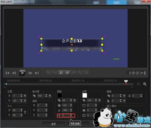 2、在弹出的对话框中,可以设置字幕的大小、位置、阻光度等数值,调整数值,添加关键帧,就能设置字体动画了,制作会声会影特效字幕了。