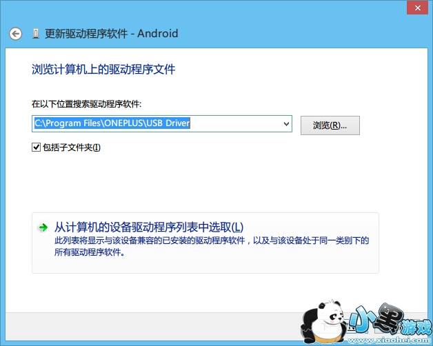 浏览,将其定位在"C:/Program Files/ONEPLUS/USB Driver/"目录,下一步,即可完成第一部分的驱动.