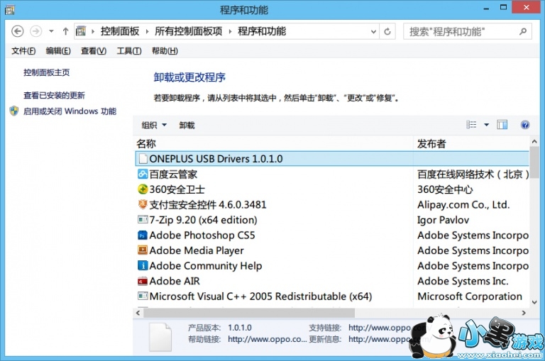 安装完成后,在电脑的 程序和功能 中能找到这个 Oneplus USB Driver.