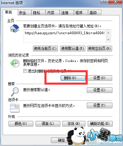 点击Internet选项,选择删除