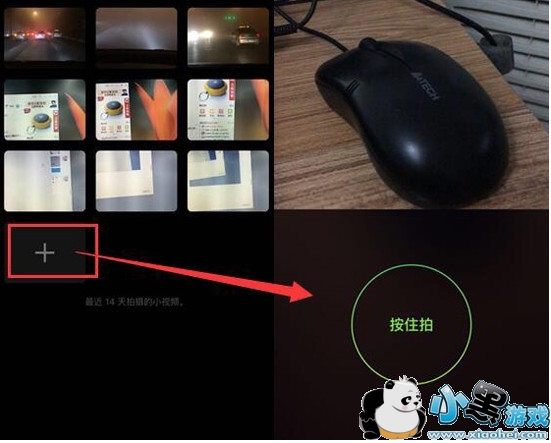 2、这里面可以看到之前拍摄的小视频,点击“编辑”可以进行删除操作,点击“+”按钮,就可以开始进行小视频的拍摄了。操作方法与之前没太多变化,按住绿色圆圈就可以了;