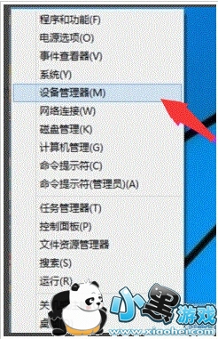 1、在开始菜单的那个图标上点击右键,然后再点设备管理器;