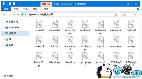 2、在System32文件夹中搜索*.cpl,搜索结果中会显示出控制面板中的一些小工具。部分.cpl为第三方软件添加,这些软件会在控制面板中添加自己的入口。