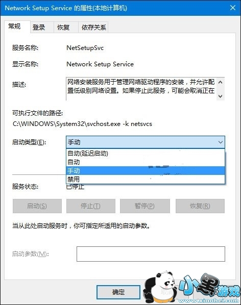 • 找到名为Network Setup Service的服务项,右键单击打开“属性”。