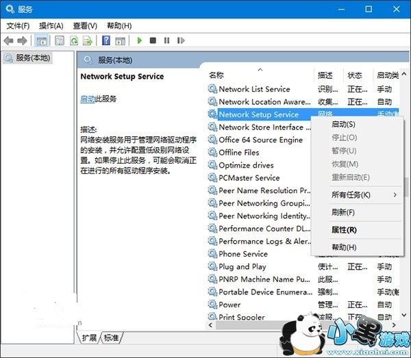 • 再右键单击Network Setup Service服务,点击“启动”;