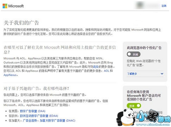 关闭Win10 Mobile/PC个性化广告教程,当你访问微软网站、使用Win10应用时,微软会为你提供个性化广告,这些广告是根据你的个人数据进行定制的,这里的个人数据包括浏览器Cookie、电脑中的搜索数据、Cortana数据等等。尽管微软没有提供禁用广告的功能,但是你可以选择退出接收个性化广告。