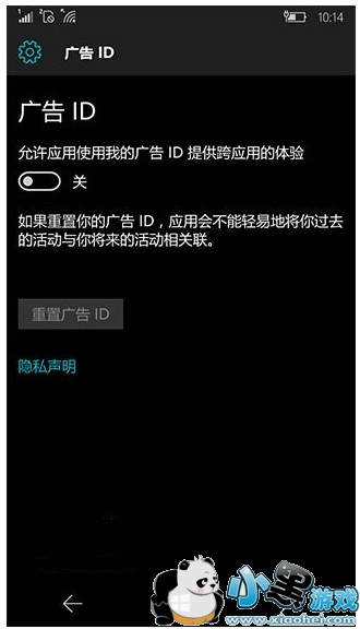 • 点按“广告 ID”,然后关闭“允许应用使用我的广告 ID 提供跨应用的体验”。