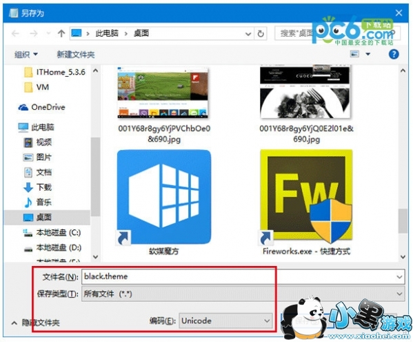 3、另存为“.theme”格式,保存类型为“所有文件”,编码选择Unicode,文件名前缀任意,如下图——