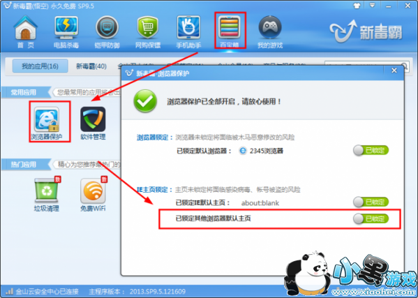 不想卸载金山毒霸,可以打开金山毒霸-百宝箱-浏览器保护-取消其他浏览器为默认主页,如图。