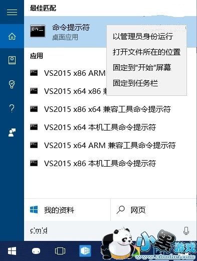 1、在开始菜单或任务栏搜索框中输入CMD,在搜索结果中找到命令提示符,右键单击,选择以管理员身份运行。