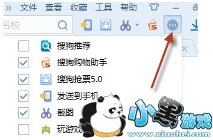 2.在打开的“工具盒子”扩展面板中,点击“搜狗热搜”旁边的“菜单”按钮,从弹出的下拉列表中选择“卸载”项即可。