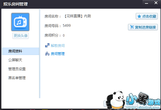 在弹出的房间信息面板中的房间资料页面,可看到房间名称栏,管理员可直接鼠标点击名称并输入新的房间名称,此处名称最大长度为48个英文字符,16个中文字符。