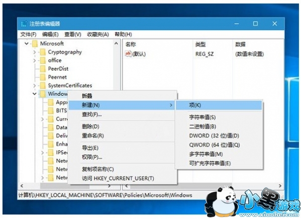 3、在该项下新建名为CloudContent的子项,如下图所示: