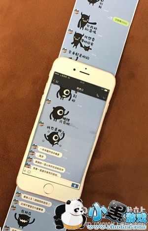 然后,将印有聊天内容的纸条,嵌入iPhone 6s纸板中。