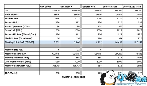 GTX 1080 Ti:5120个CUDA核心、320个阴影单元,160个ROP(光栅)单元,基础频率1025MHz,浮点运算超10TearFLOPs,8GB GDDR5显存,位宽512bit。
